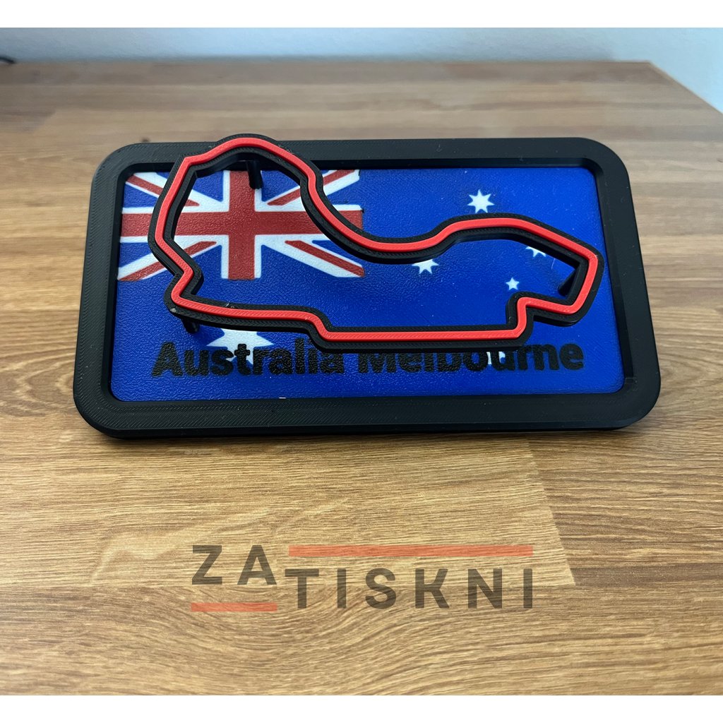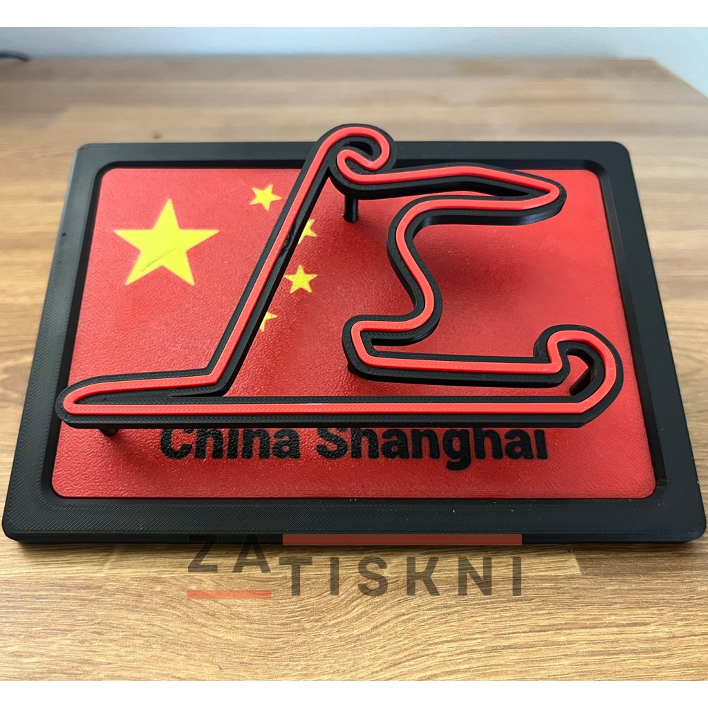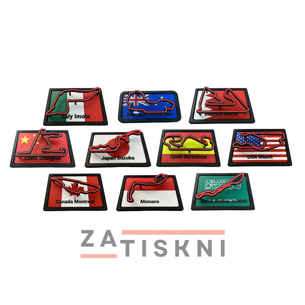 Unikátní design – propojení vlajky země a siluety závodního okruhu v moderním 3D provedení.