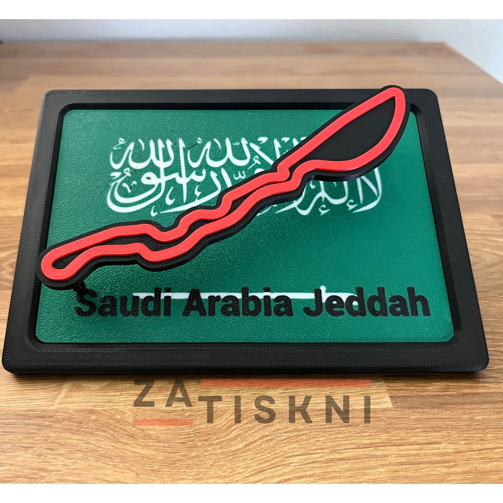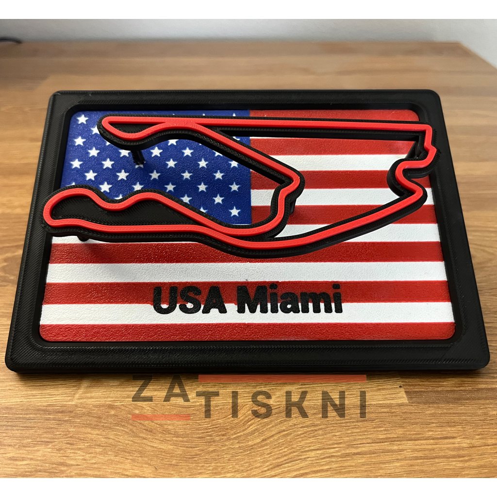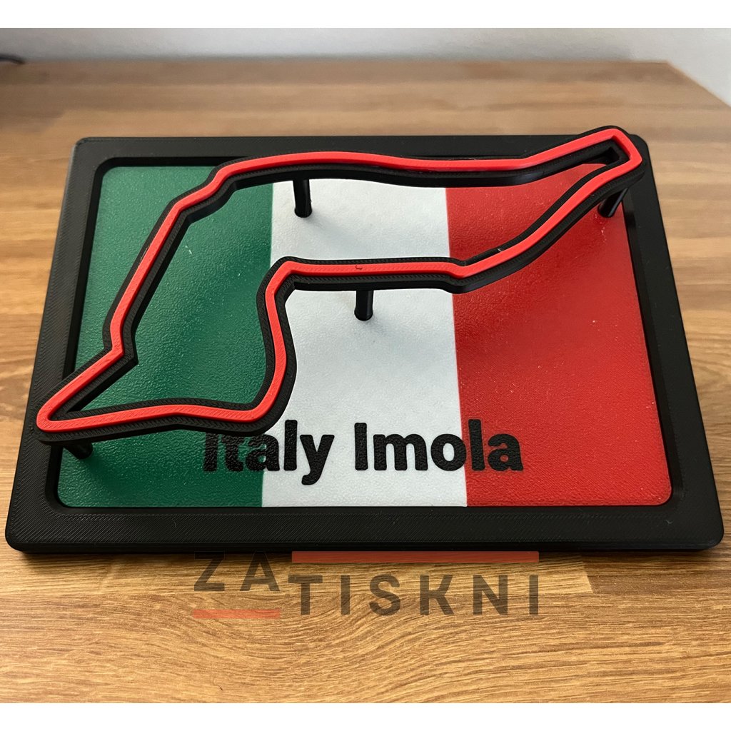 Unikátní design – propojení vlajky země a siluety závodního okruhu v moderním 3D provedení.