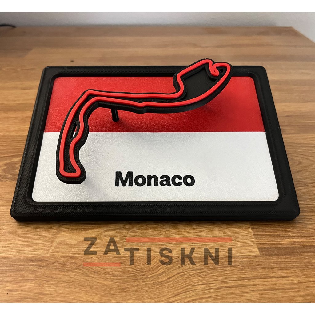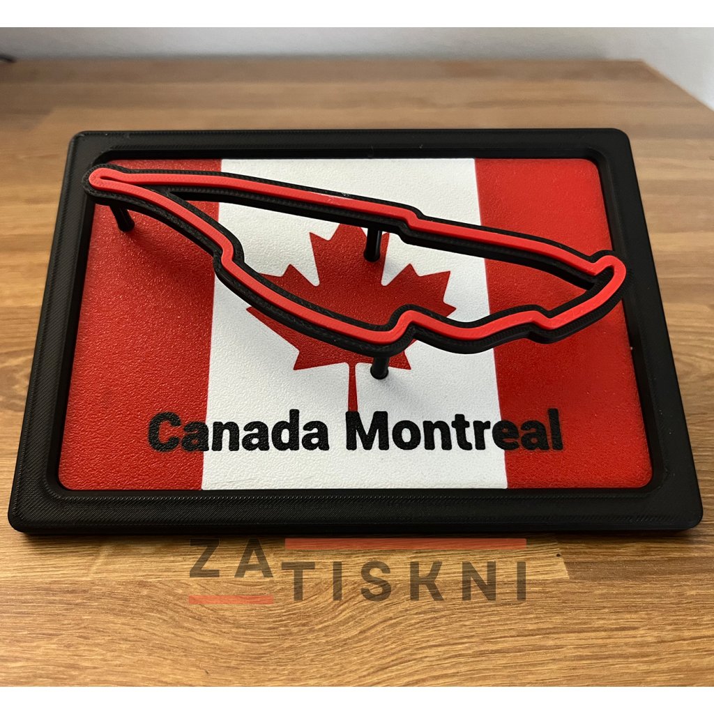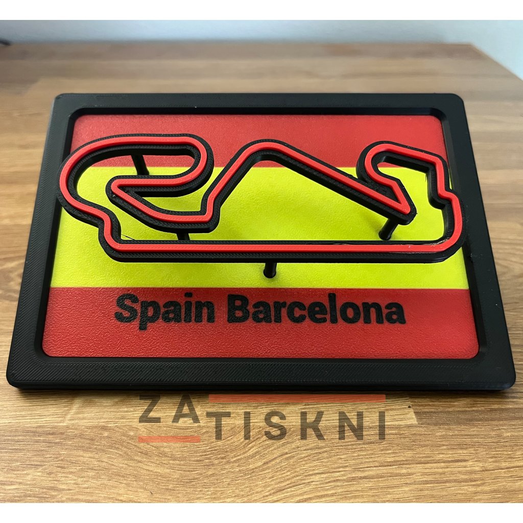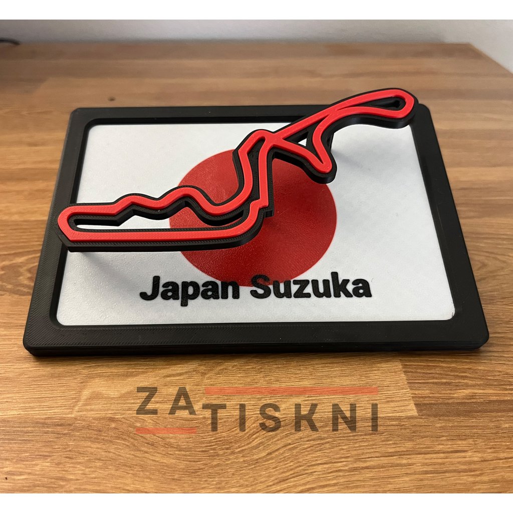 Originální 3D dekorace na stůl spojující vlajku země a siluetu závodního okruhu. Stylový doplněk pro každého fanouška motorsportu.